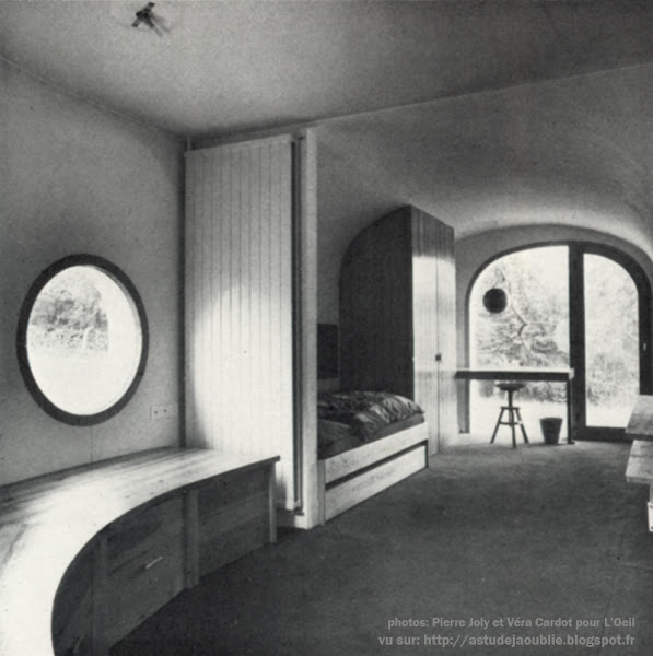 La maison désormais achevée, habitée, la forme en peut surprendre: pas de mur, ni de toit, nulle part cet angle droit qui passe pour la norme et presque la règle morale de tout établissement humain. Les fenêtres s'arrondissent, comme pour mieux se conformer au champ de la vision. Le béton, projeté directement sur une armature mise en place au préalable, sans coffrage, épouse les contours les plus souples. La solidité de la construction est d'autant plus grande que la courbure des parois s'apparente à celle des formes d'égale résistance (isostatiques):